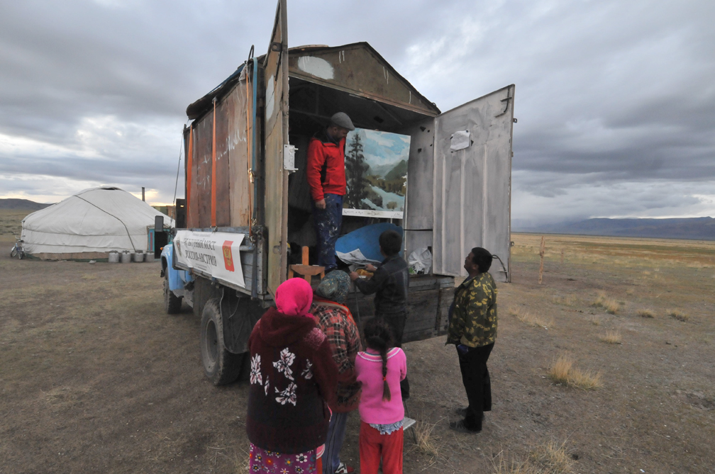 2009 montierte Lukas Pusch die White Cube Gallery Novosibirsk auf die Ladefläche seines sowjetischen LKW ZIL 130 und organisierte Wanderausstellungen ins russisch mongolische Grenzgebiet. In der Tradition der russischen Wanderer Bewegung und Paul Gauguins war die Reise auch eine Metapher für die Suche nach einer neuen Welt und den romanischen Zugang zur Moderne.
