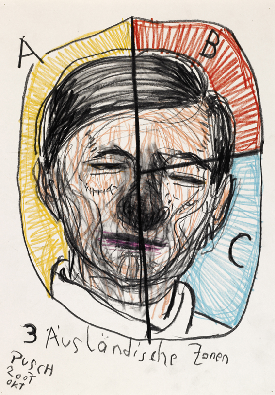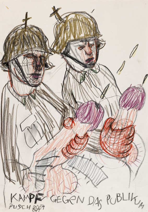 Crash sind eine Serie von Linkshandzeichnungen. Bei einem Autounfall hatte Lukas Pusch die Finger der rechten Hand gebrochen.