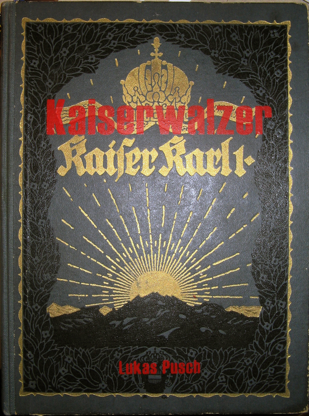 Das Künstlerbuch Kaiserwalzer dokumentiert die »aus feuerpolizeilichen Gründen« verbotenen Aktion „Kaiserwalzer und Thronnachfolge“ von Lukas Pusch in der Wiener Hofburg. Der Künstler hat hierzu 20 Bücher in verschiedenen Formaten, die alle um 1900 erschienen sind, neu betitelt und mit zahlreichen Collagen, Photos, Übermalungen und Texten überarbeitet.